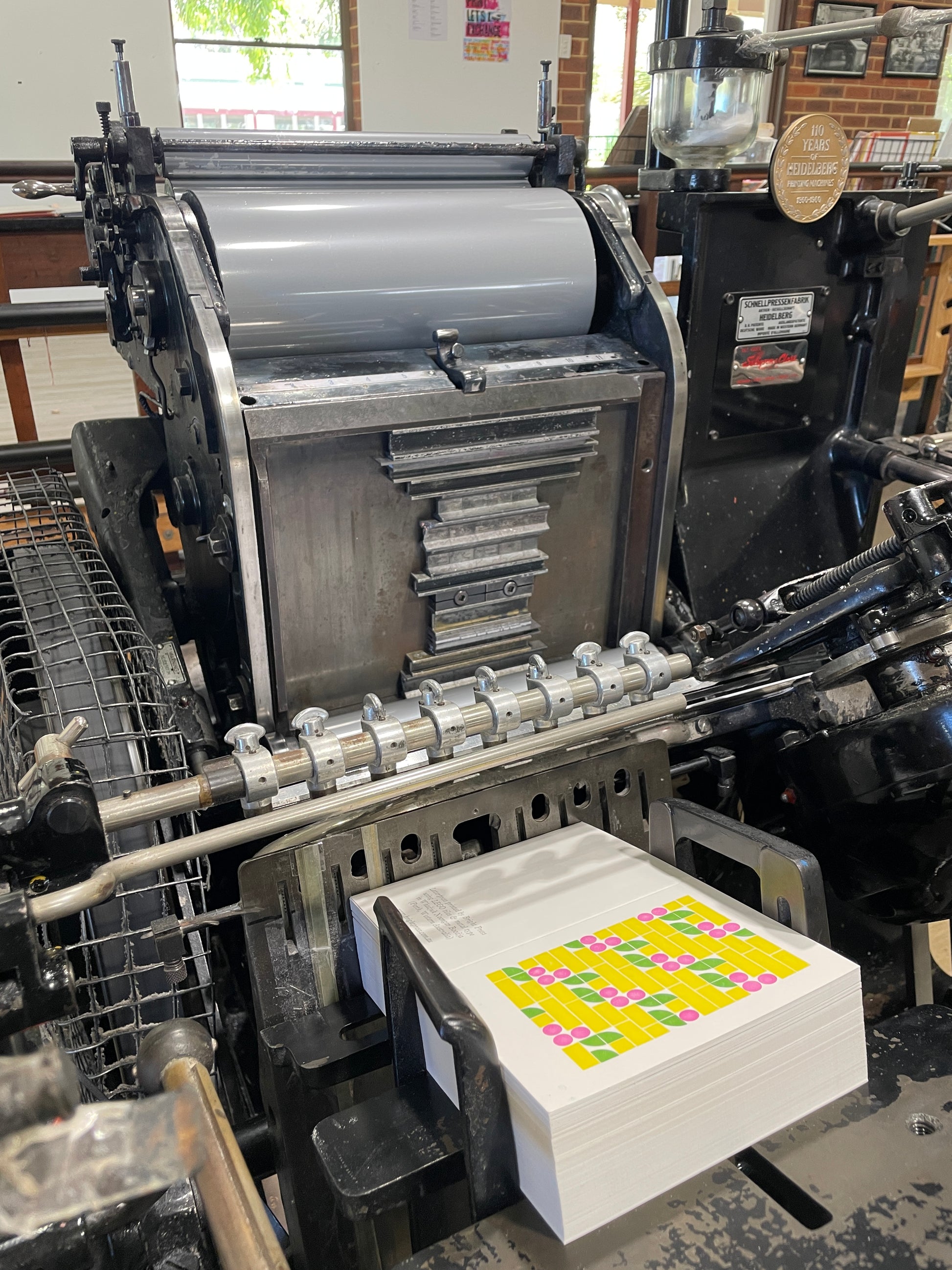 This greeting card has been created using LEGO tiles and metal type cast from our original Ludlow Typograph, and our heritage presses. Letterpress printed on 330gsm swiss white paper with four coloured inks - yellow, teal (overlaid on yellow to become a mid green), pink, and silver. Each card is paired with a kraft brown envelope.
